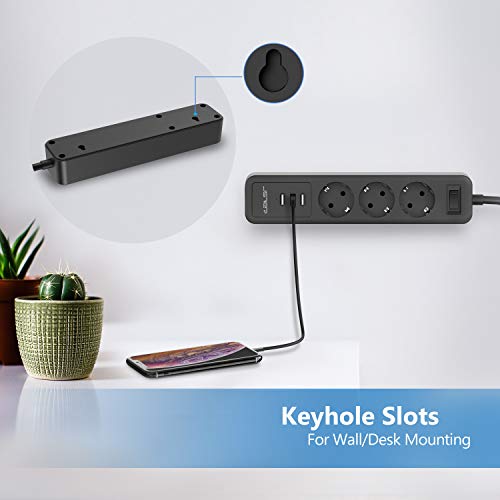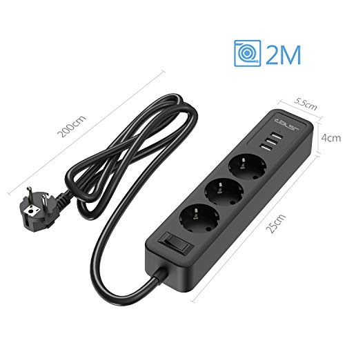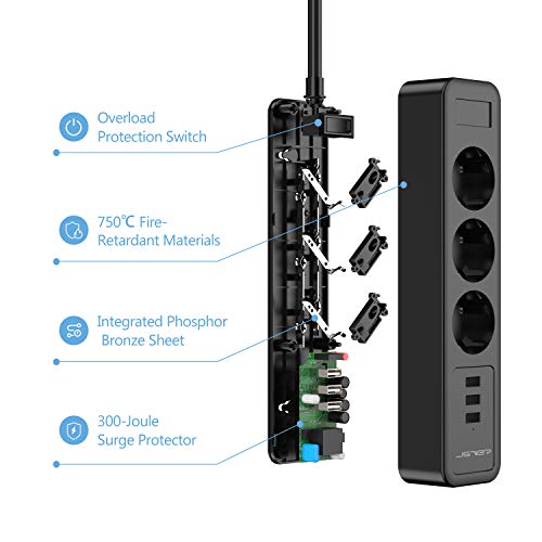 Specification: JSVER Stekkerdoos 3 stopcontacten 3 USB-oplaadpoorten Verlengkabel, Stekkerdozen Overspanningsbeveiliging met USB…