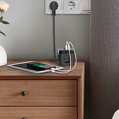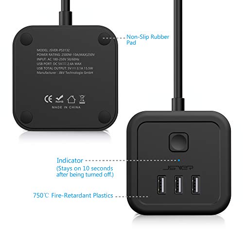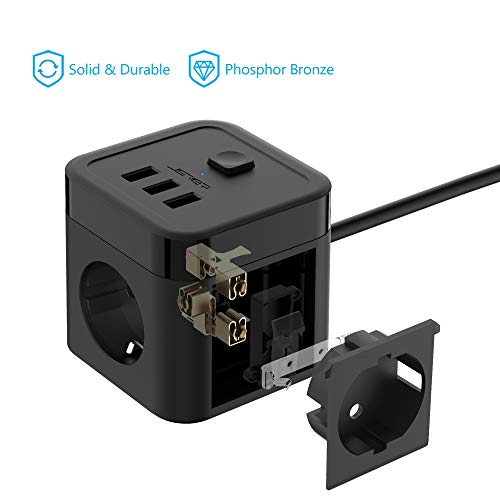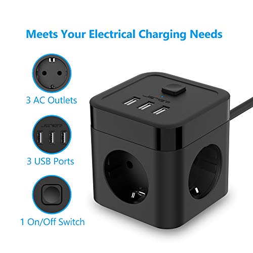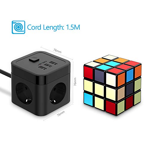 Specification: JSVER Stekkerdoos Cube USB, Meervoudige contactdoos Cube overspanningsbeveiliging 3 Stekkers en 3 USB (15,5 W) met…