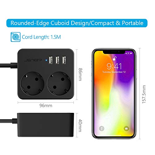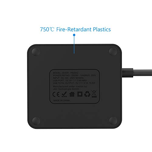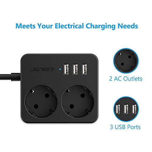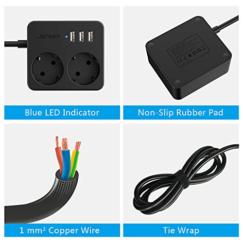 Specification: JSVER Stekkerdoos USB met 2 Stekkers , Overspanningsbeveiliging met 3 USB (15,5 W) USB Stopcontactadapter voor kantoor…
