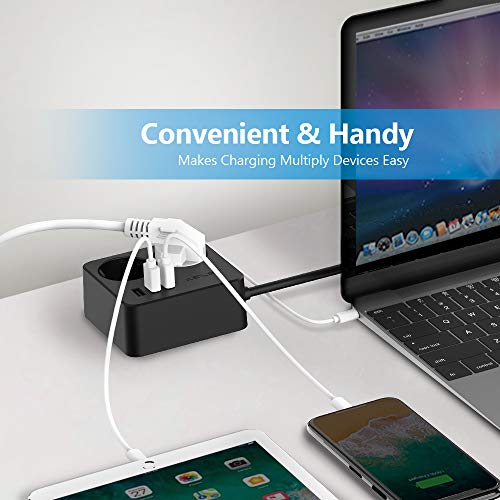 Meer kracht: de stekkerdoos met USB-slots uitgerust met 2 AC-uitgangen en 3 USB-poorten met 150 cm stroomkabel voor optimaal bereik. Laad alles op, van grote apparaten tot je telefoon.