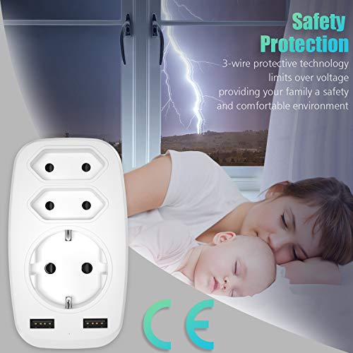 Specification: LENCENT USB Stekkerdoos Stekker 4000W Stekkeradapter Dubbele Euro en 1 Geaarde Meervoudige Stekkerdoos met 2 poorts USB…