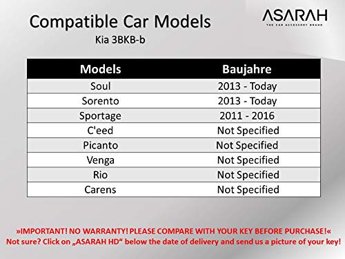 Specification: ASARAH Premium siliconen sleutelhoes compatibel met Kia, beschermhoes autosleutel cover – Sea Blue KI 3BKB-b