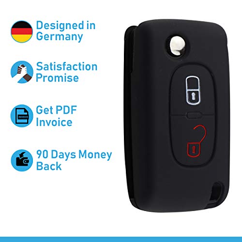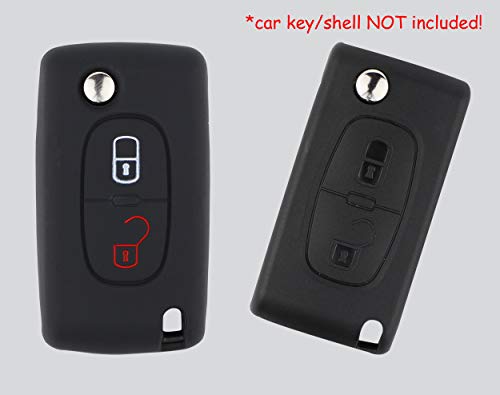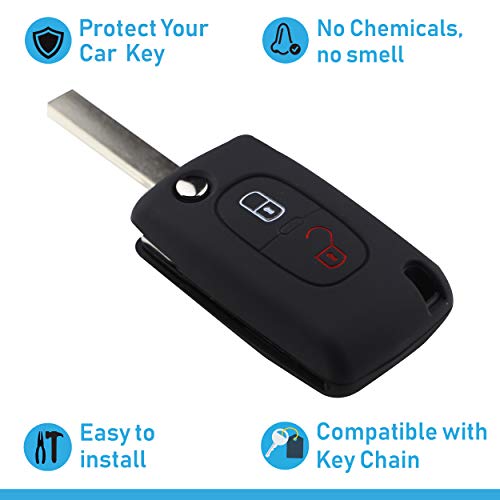 Specification: ASARAH Premium siliconen sleutelhoes compatibel met Peugeot, beschermhoes autosleutelcover – zwart PE 2BKB