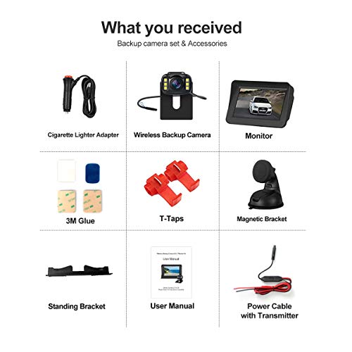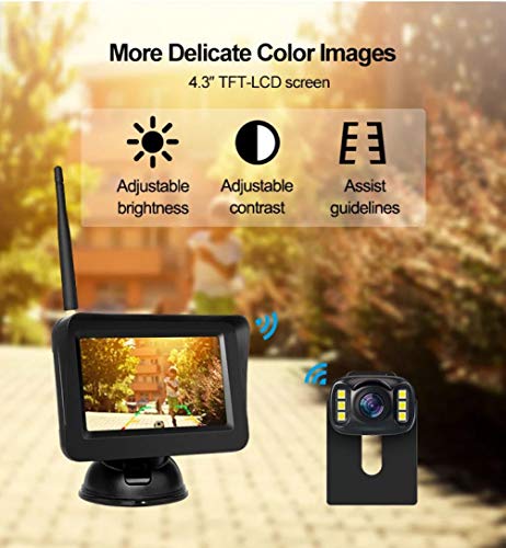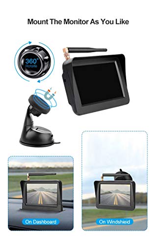 【Draadloos ontwerp voor eenvoudige installatie】 Geen ingewikkelde kabels meer. Een 4,3 inch LCD-monitor verbindt met de achteruitrijcamera door een draadloze zender. Draadloze zender vervangt zo de ingewikkelde lange videokabel. Maakt hij alle dingen veel eenvoudiger.