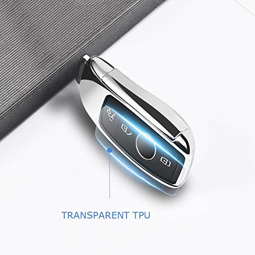 OATSBASF Mercedes Benz autosleutelhoes, beschermhoes sleutelhoes cover voor Mercedes Benz E klasse 2017 S 2018 (zilver)