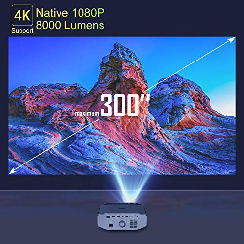 【8000 Lumens en 17 miljoen Kleurenbereik】Verbeterd met Mstar prestatiechip en TFT LCD technologie, veel helderder en kleurrijker dan andere 1080p WIFI Bluetooth beamer, het kleurengamma is tot 95% van NTSC en biedt tot 17 miljoen kleurbereiken, kan 100% RGB kleursignalen weergeven voor elk beeld. De verbetering zorgt voor een ongeëvenaarde filmische ervaring.
