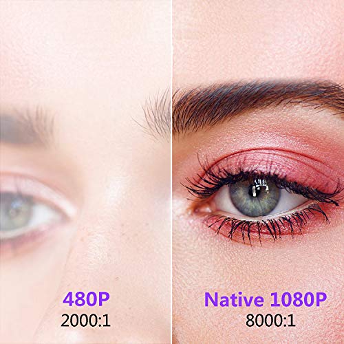 ▶ 【1080P Native en 7000LUX】 Bioscoopniveau Big Screen-weergave 16: 9 HD 1080P-beeld, ± 15º verticale keystone-aanpassing en 8000: 1 hoge contrastverhouding. Deze draagbare bioscoopprojector past de nieuwste optische lcd-technologie toe om een helderheid tot 7000 lumen te bereiken. De projector werd + 90% helderder dan andere gewone filmprojectoren.