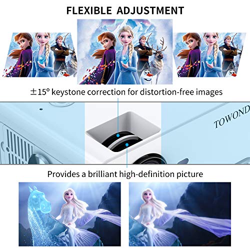 Specification: Bluetooth Projector, TOWOND HD 1080P-videoprojector met 7000 lumen en ingebouwde stereoluidsprekers, compatibel met USB…