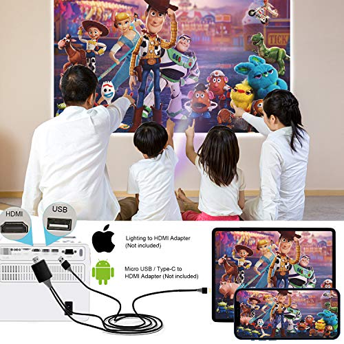 ▶ 【Compatibel met groot scherm en multimedia】 De projector biedt een projectiegrootte van 30 “tot 300”, afhankelijk van de afstand (5-16,5 ft) en 10 ft is de aanbevolen kijkafstand. Onze thuisprojector bevat 2 * USB-, HDMI-, VGA-, AV-, SD- en audio-uitgang. Het is compatibel met TV Box, Chromebook, pc, laptop, tablet Blu-ray, dvd-speler, SD-kaart, USB, videogames, PS5, mediaspelers (muziek, afbeeldingen, video of TXT) en smartphones.