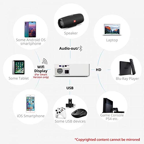 Resolutie en kwaliteit projector:Dit model beschikt over een resolutie van 1920 x 1080 pixels. De resolutie is hoog genoeg om films en media in Full HD kwaliteit te kijken. Dit is ook hoog genoeg voor gaming en u kunt video’s gebruiken tijdens zakelijke presentaties. De beamer beschikt over 500 Ansi Lumen.