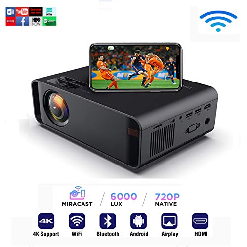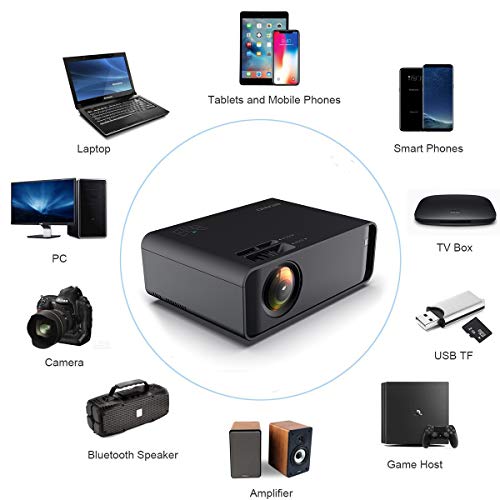 【6000 lumens -Bluetooth-projector -WiFi-projector voor iPhone, Samsung, Huawei-smartphone, tablet etc. Meerdere verbindingen】 Heldere en duidelijke projectie -Ingebouwde luidspreker, ook Bluetooth-luidspreker kan worden aangesloten. Ondersteuning verbinding mobiele telefoon via WiFi. Aansluiting: HDMI, AV, VGA, SD-kaart en USB-aansluiting, ideaal voor film, muziek, foto, game, voetbalspel. het kan verbinding maken tv-box, laptop, pc, SD-kaart, USB, flash drive, playstatio, Chromecast etc.