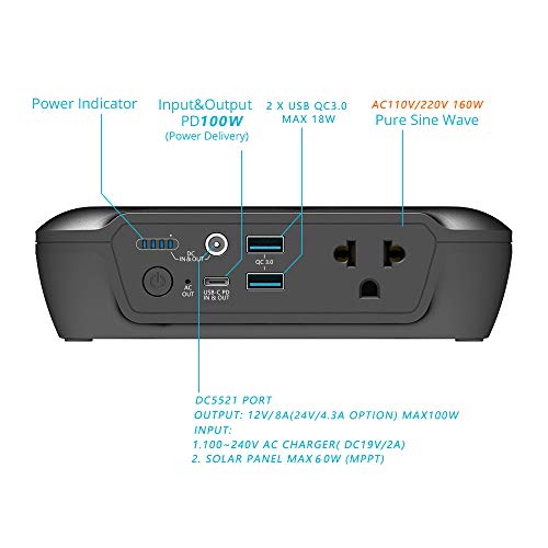 VEELZIJDIGE LADER | Het dient als back-up voeding voor buitenactiviteiten, kamperen, berg, e-bike, scooter, buitenwerk, tv, CPAP, perfect voor smartphone en nieuwe laptops met Type-C-aansluiting. Het heeft 4 uitvoermodi: 1x AC-stopcontact (voor apparaten tot 160W) – 1x USB-snellaadpoort tot 2,4 A – 1x USB Type-C PD-poort 100W – 1x DC 12V-poort.