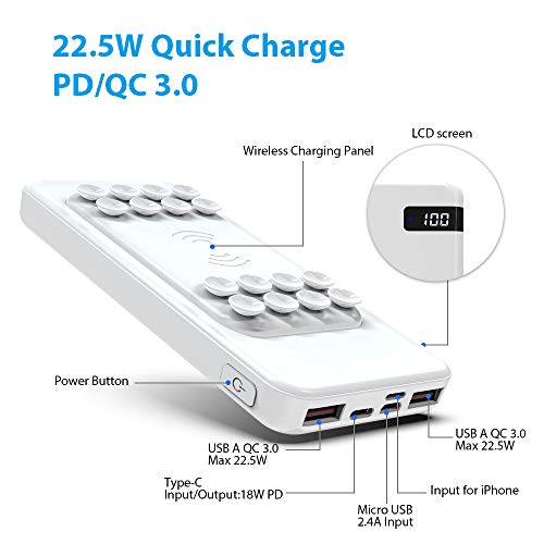 Specification: MOXNICE Power Bank Wireless 10000mAh Powerbank QC3.0, PD 18W USB C Externe Batterij voor iPhone, iPad, Samsung, Huawei…