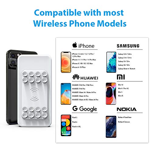 Zuignapontwerp: Kleine zuignapjes blijven stevig en veilig aan uw mobiele telefoons kleven tijdens draadloos opladen. Het is bestand tegen trillingen en trillingen en maakt het een gemakkelijkere en efficiëntere manier om draadloos op te laden.