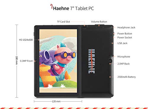 Specification: HAEHNE Tablet PC 7 inch Android tablet met HD-displays, Google Android 9.0 systeem, twee camera’s, Quad Core 1GB RAM…