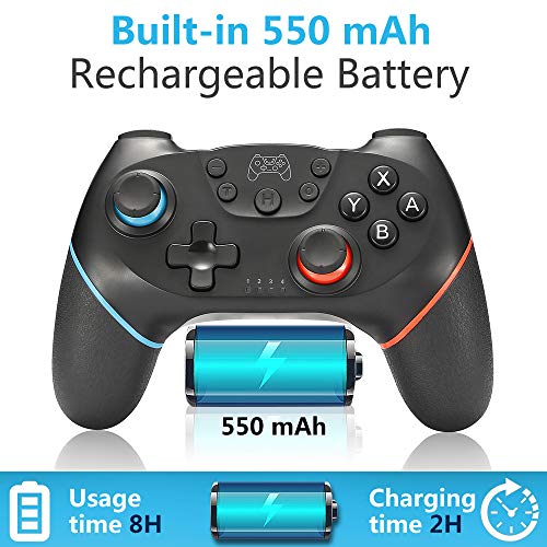 🎮【Oplaadbare batterij en Bluetooth-verbinding】 De geïntegreerde 550 mAh lithiumbatterij heeft slechts 2-3 uur nodig om volledig op te laden en ondersteunt 8 uur continu gamen (dankzij de extra functie van automatische uitschakeling wordt de batterij niet per ongeluk ontladen na 5 minuten inactiviteit ). De draadloze schakelaarcontroller is snel te koppelen aan de schakelaarconsole, die tot wel 10 meter lang is. Je kunt altijd en overal met vrienden spelen.